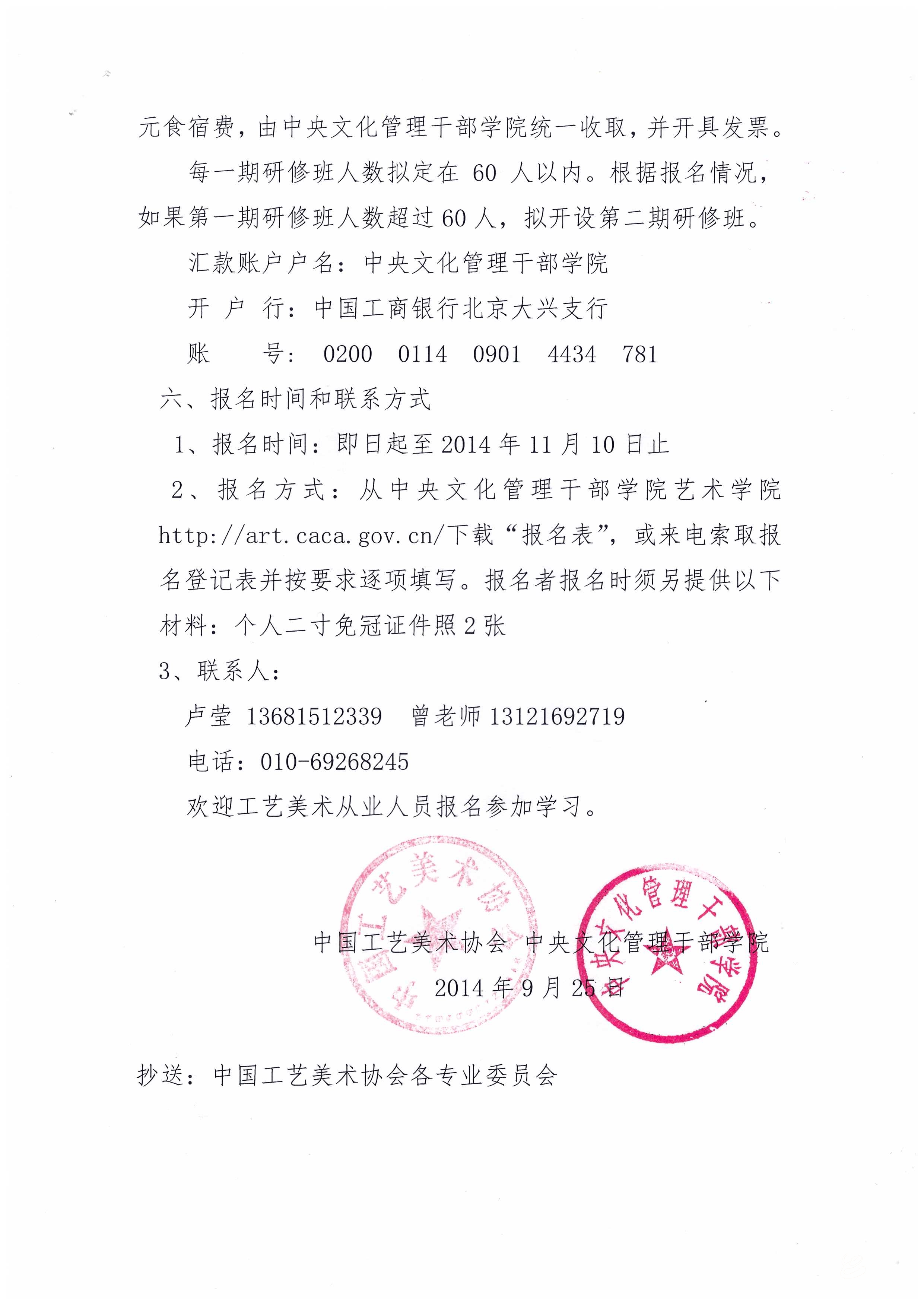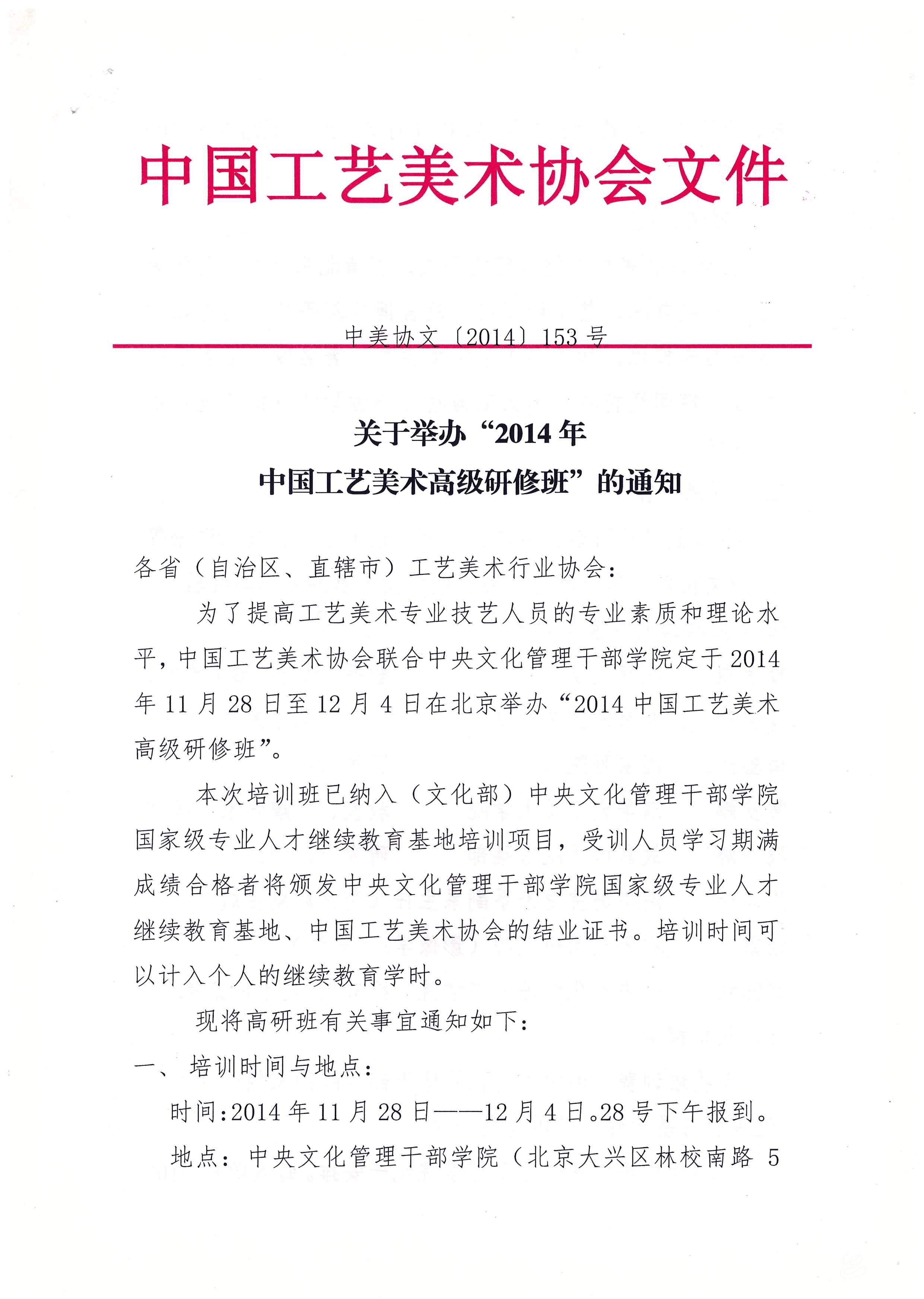 现转发中国工艺美术协会《关于举办“2014年中国工艺美术高级研修班”的通知》,请相关人士抓紧时间报名。详情请见附件。