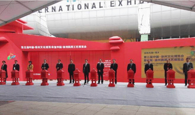 9月30日,第三届中国·徐州文化博览会开幕。本届展会由中国工艺美术协会、中共徐州市委、徐州市人民政府、北京文化产业商会联合主办,由中国民间文艺家协会作为指导单位,得到了中共江苏省委宣传部、江苏省文化厅、江苏省新闻出版广电局、江苏省民间文艺家协会、江苏省工艺美术行业协会的大力支持。