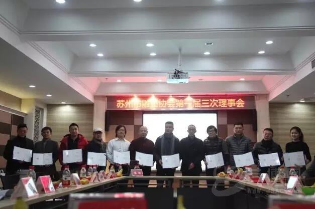苏州市雕塑协会第一届三次理事会于2017年1月8日在苏州悉地勘察设计顾问有限公司召开,会长曹雪明、名誉会长梁君楣、副会长沈建国、王和平、王晓东、孙厚义、周年青及理事、嘉宾约50人参加了会议。会议由协会秘书长杨明主持。