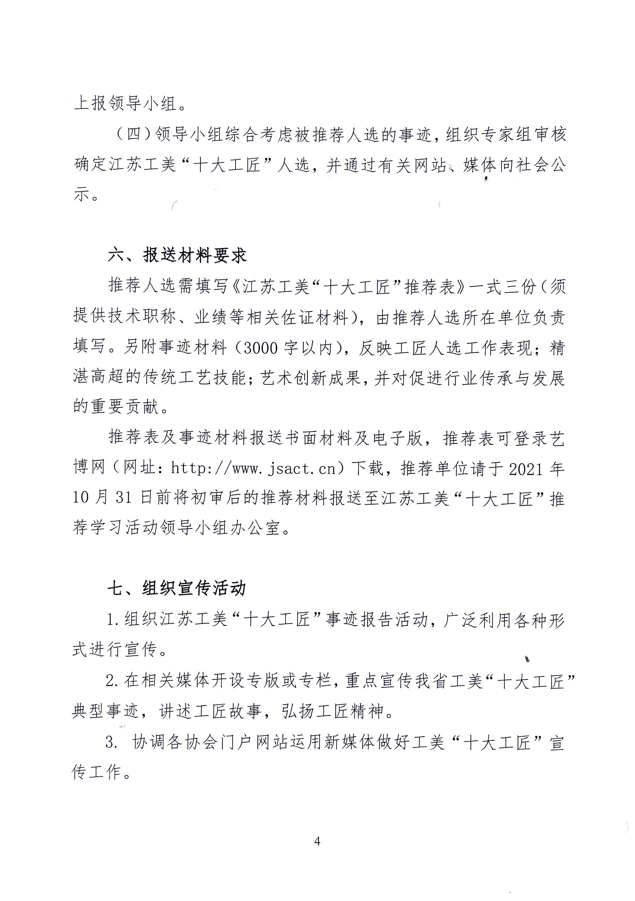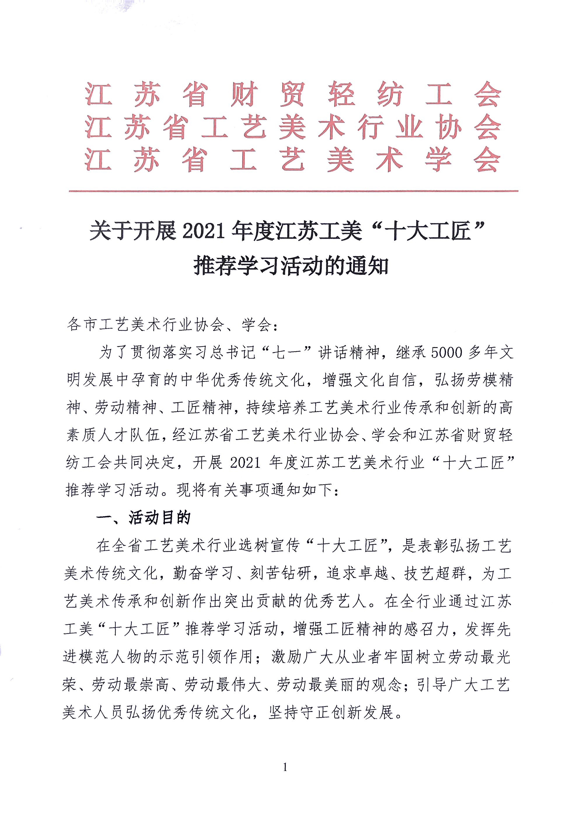 关于开展2021年度江苏工美“十大工匠” 推荐学习活动的通知