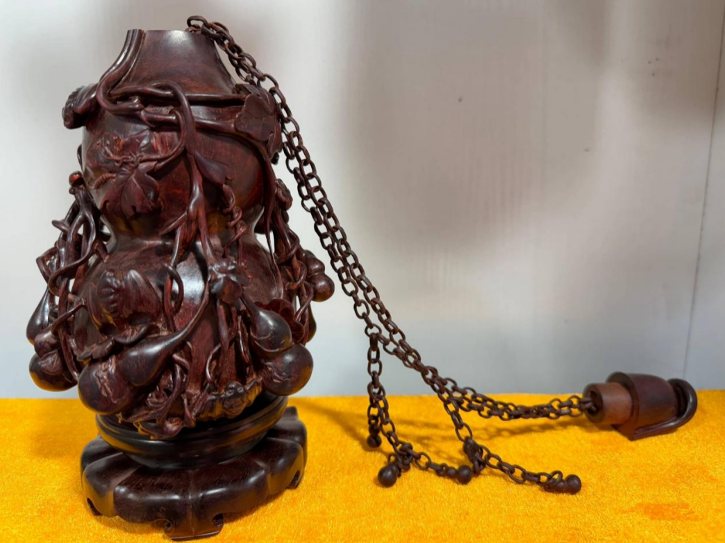 “葫芦(福禄连绵)”摆件的创作,是一次传统民族文化与现代雕刻技法深度融合的实践探索。作品以“独特构思理念”为引领,以“匠心独运的技法(含刀具创新)”为支撑,以“可动链条的动态叙事”为亮点,既满足了观赏者的审美与互动需求,又传递了中国传统文化精神内核。